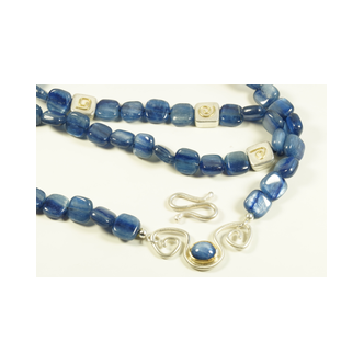 unverarbeiteten Edelsteinen und Kettensträngen.